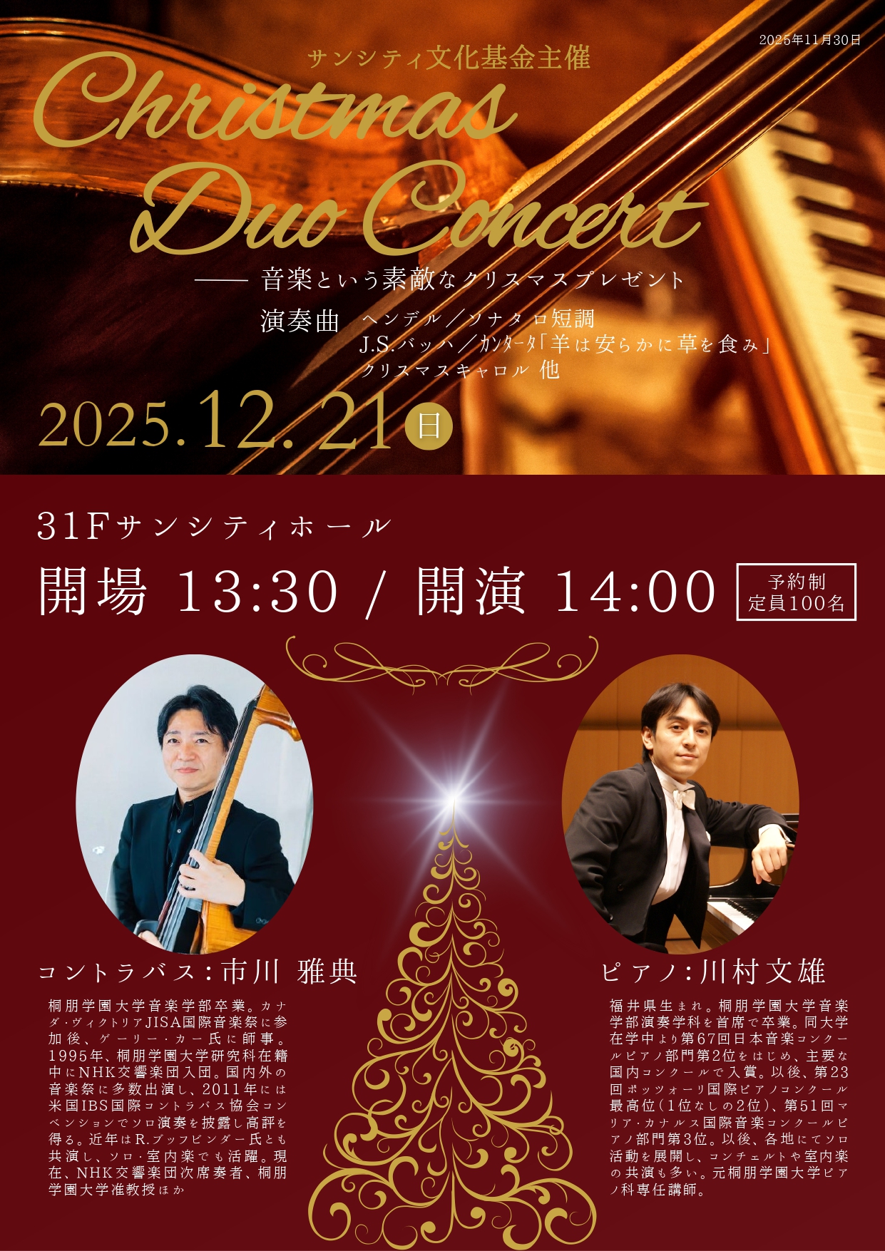 Concertサンシティ文化基金 Christmas Duo Concert 音楽という素敵なクリスマスプレゼント